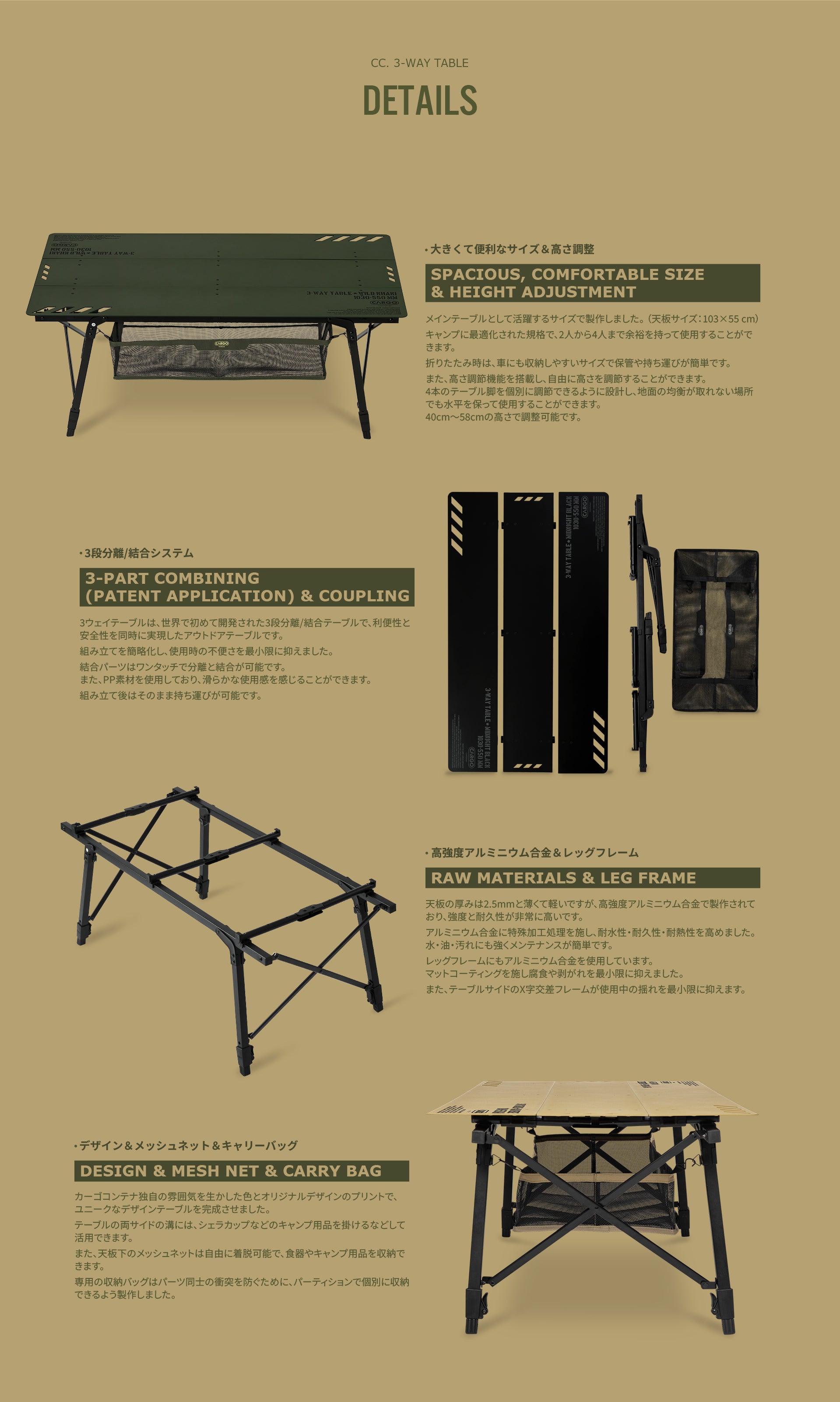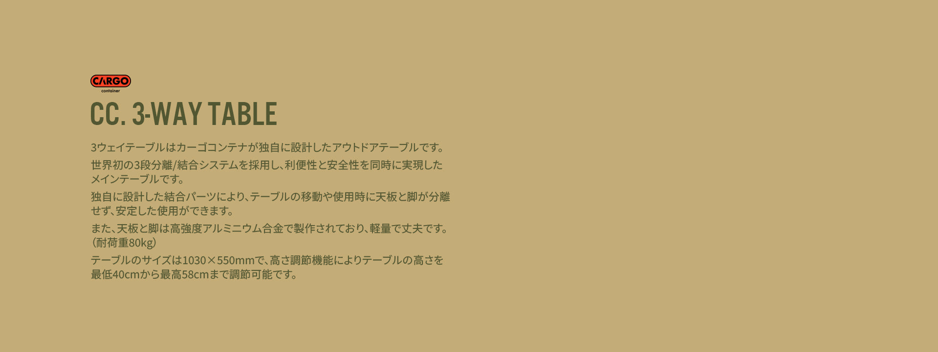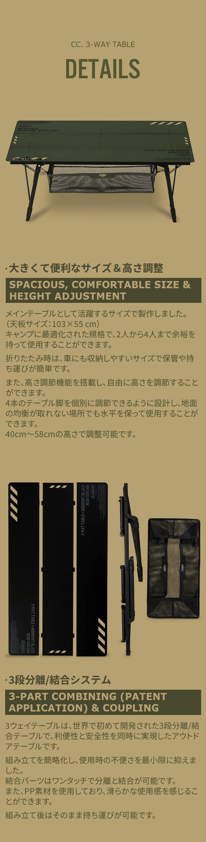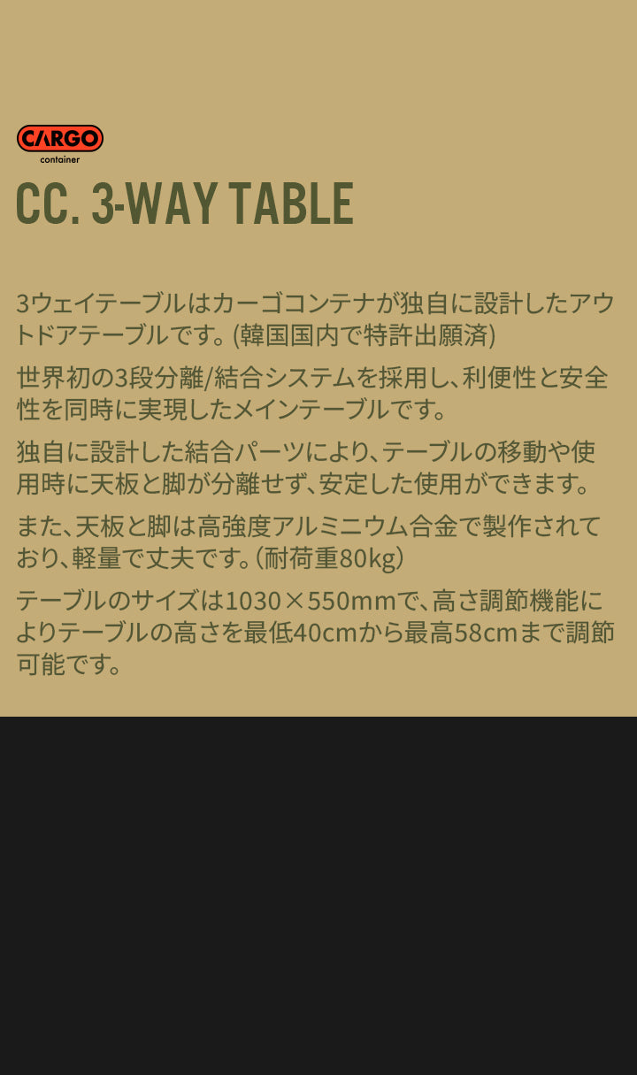 3ウェイテーブルは天板に世界初の3段分離/結合システムを採用し、利便性と安全性を同時に実現したテーブルです。