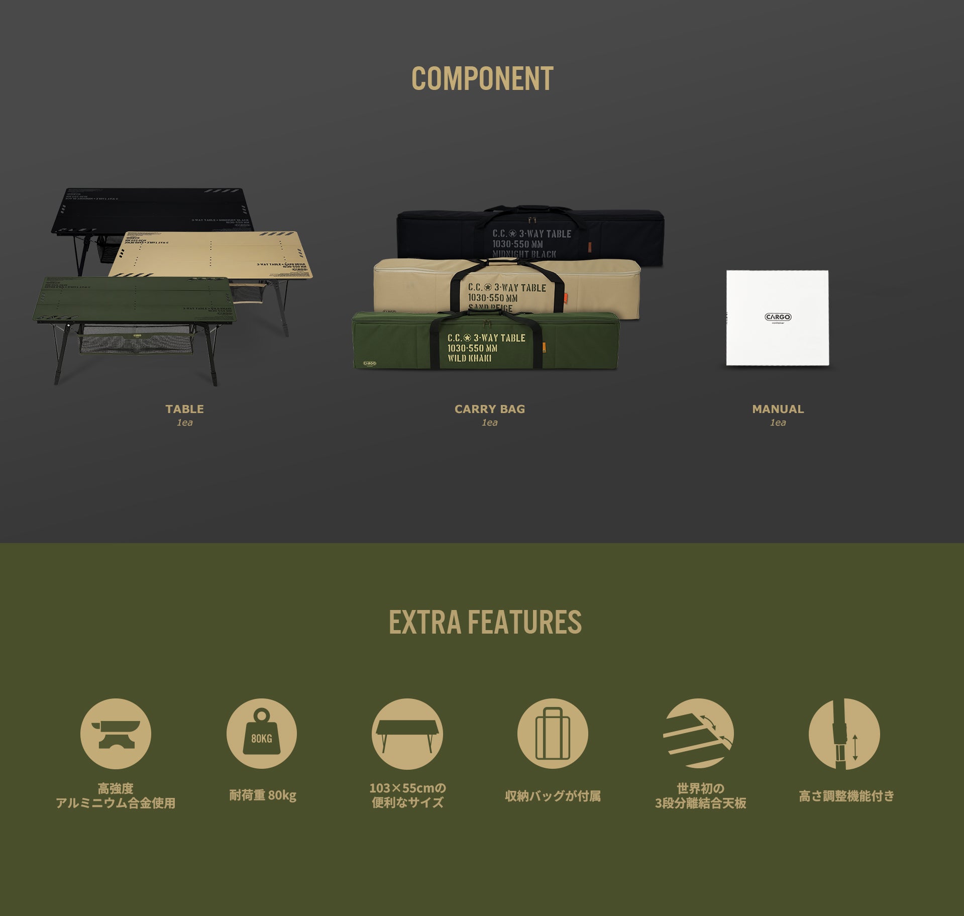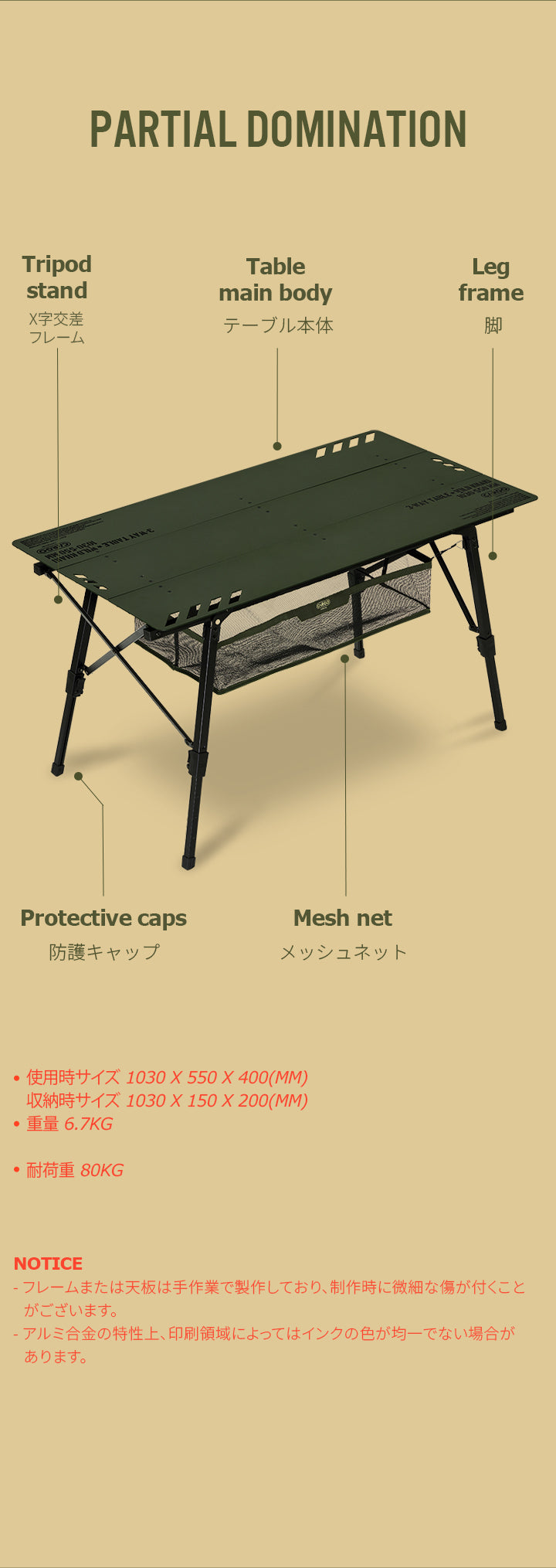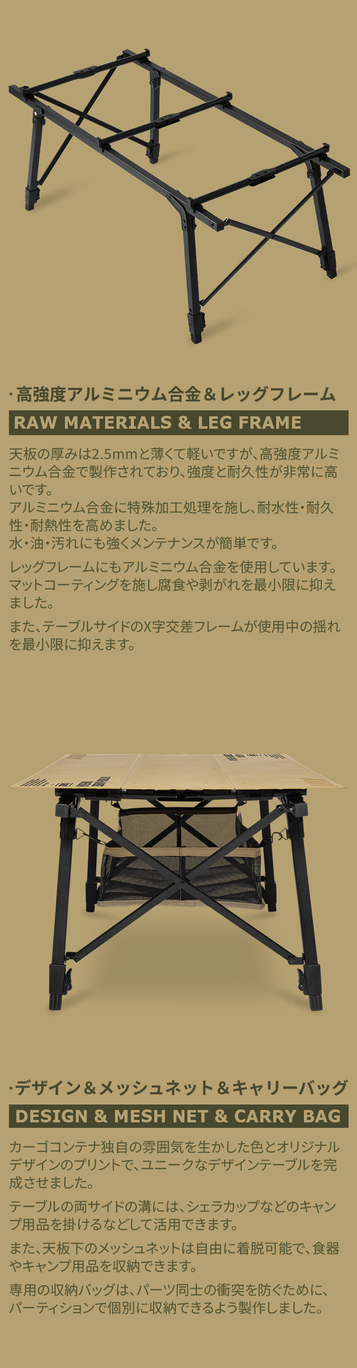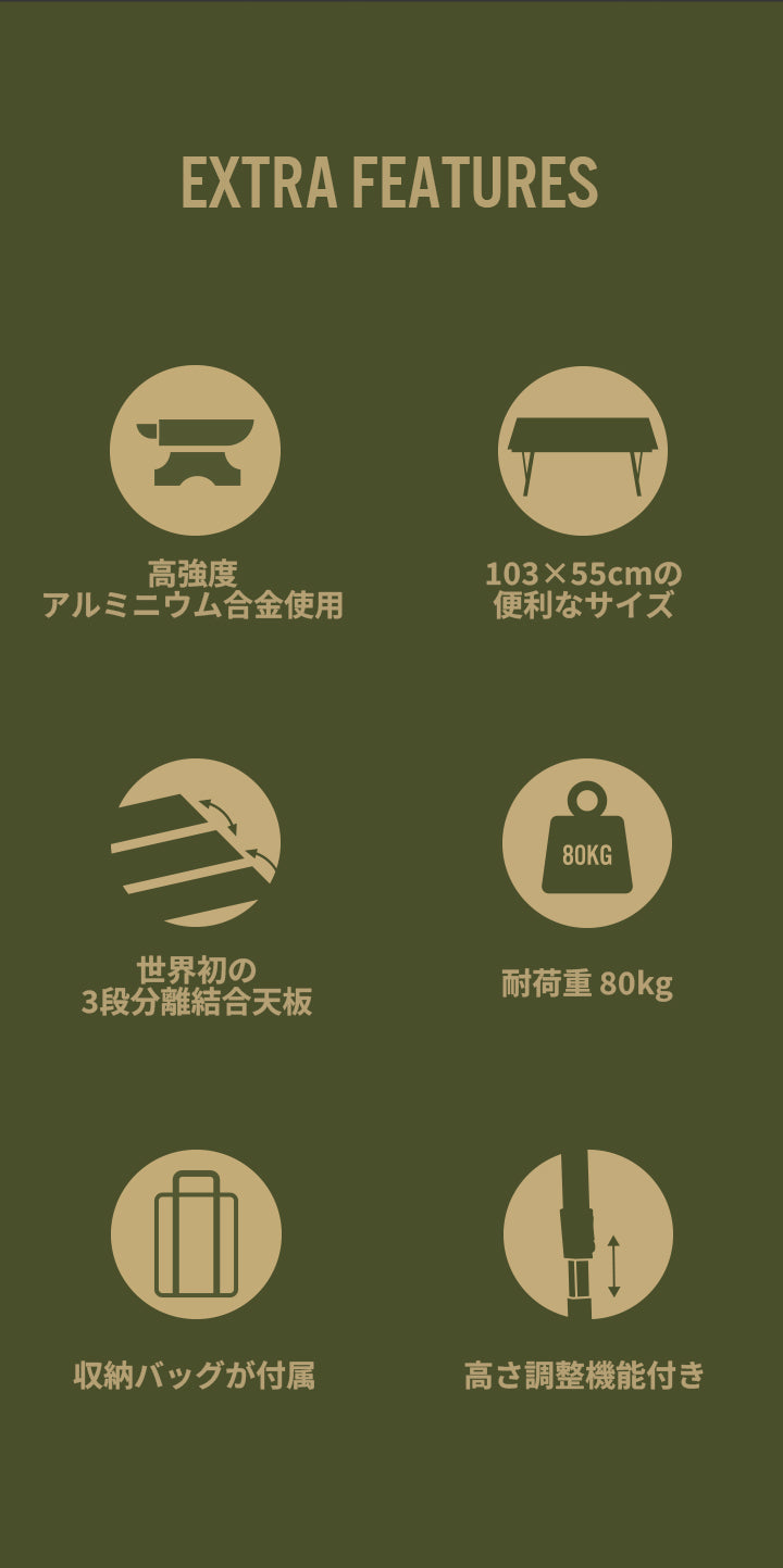 天板は高品質アルミニウム合金で製作されており、軽量で丈夫です。