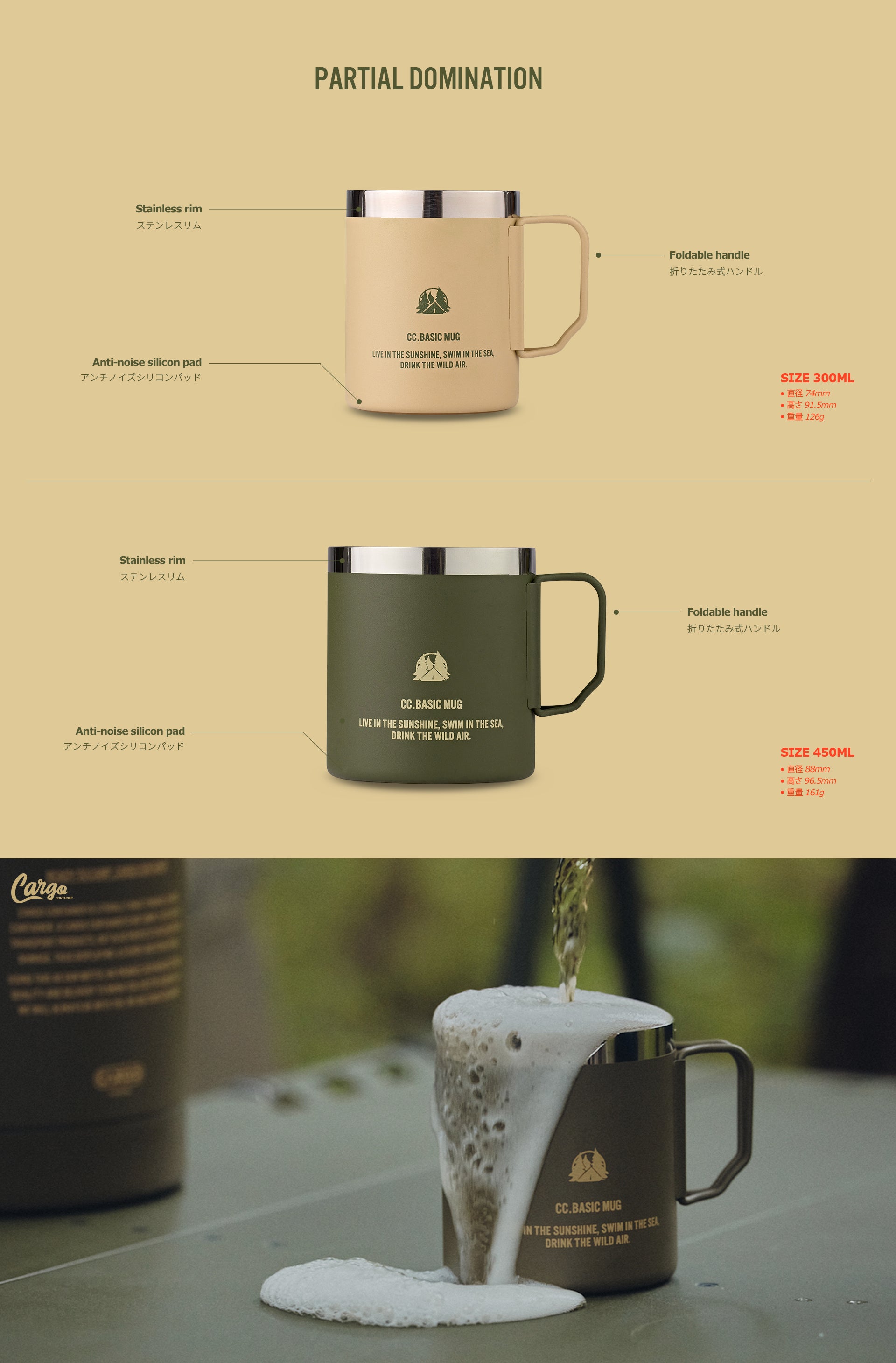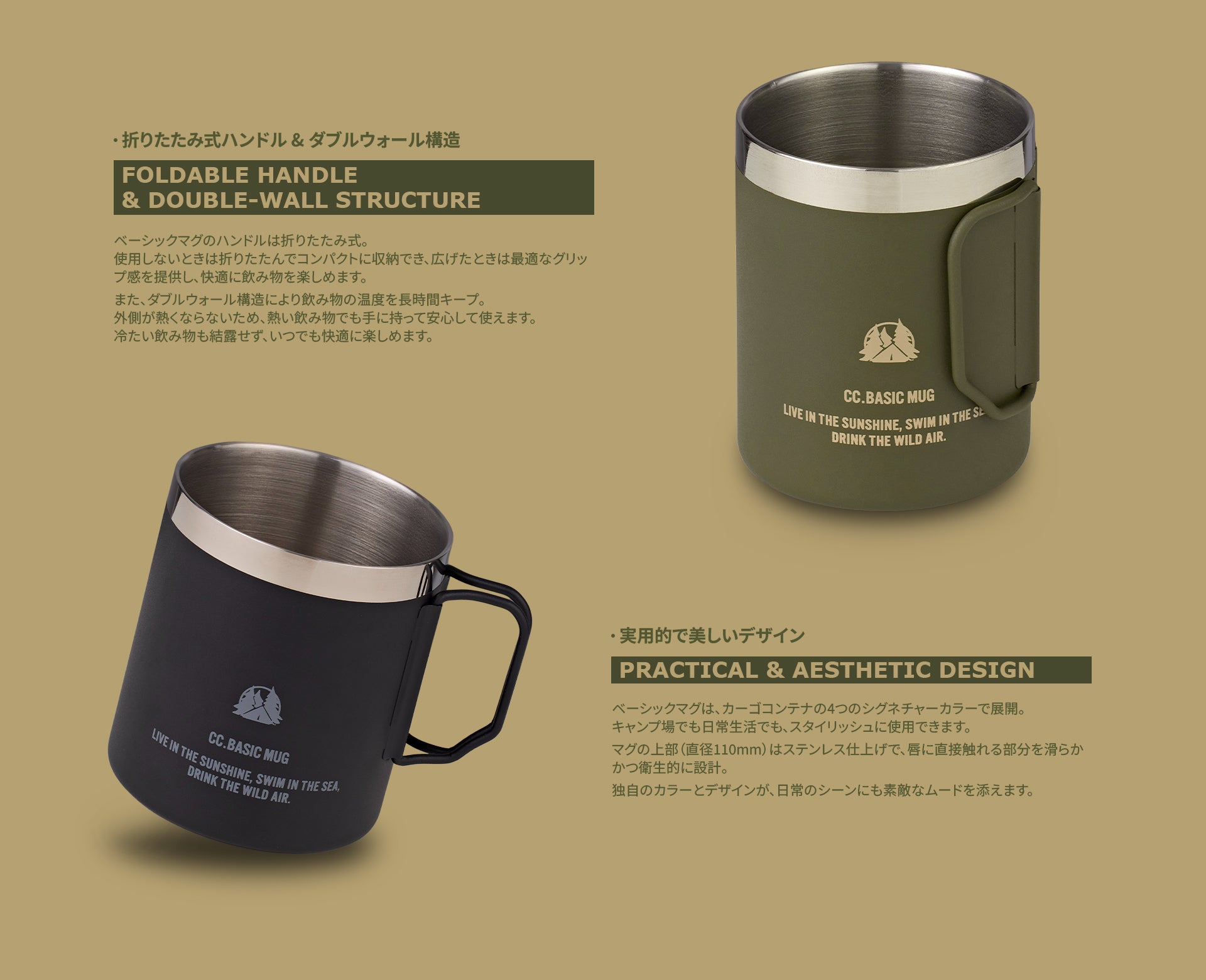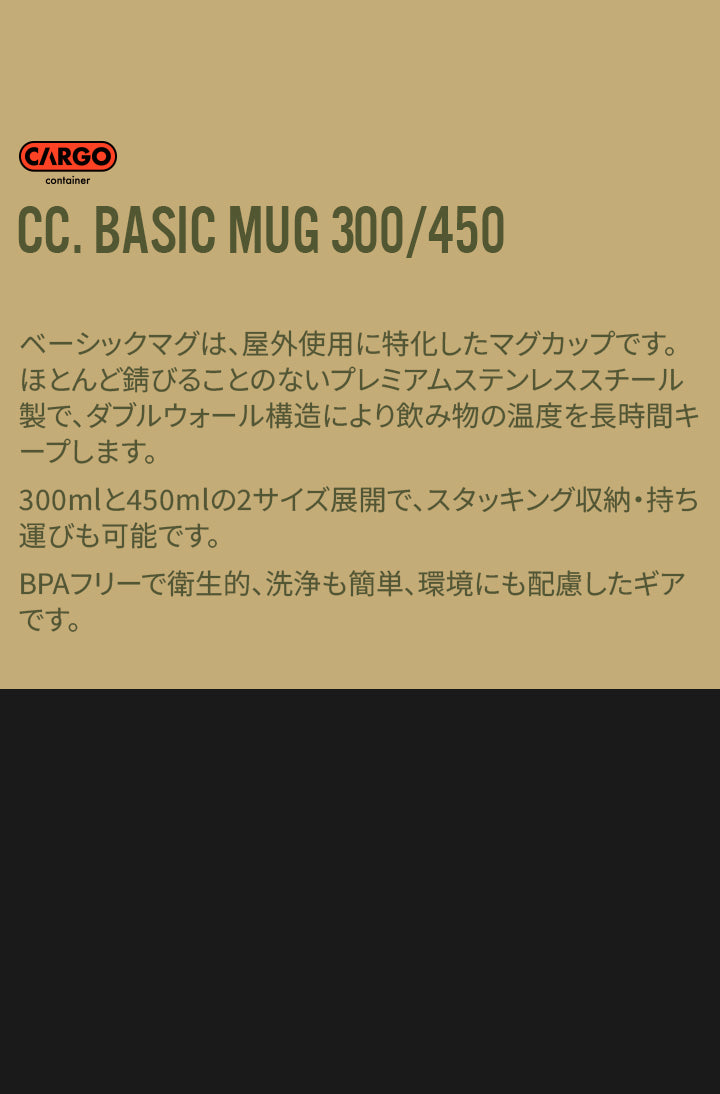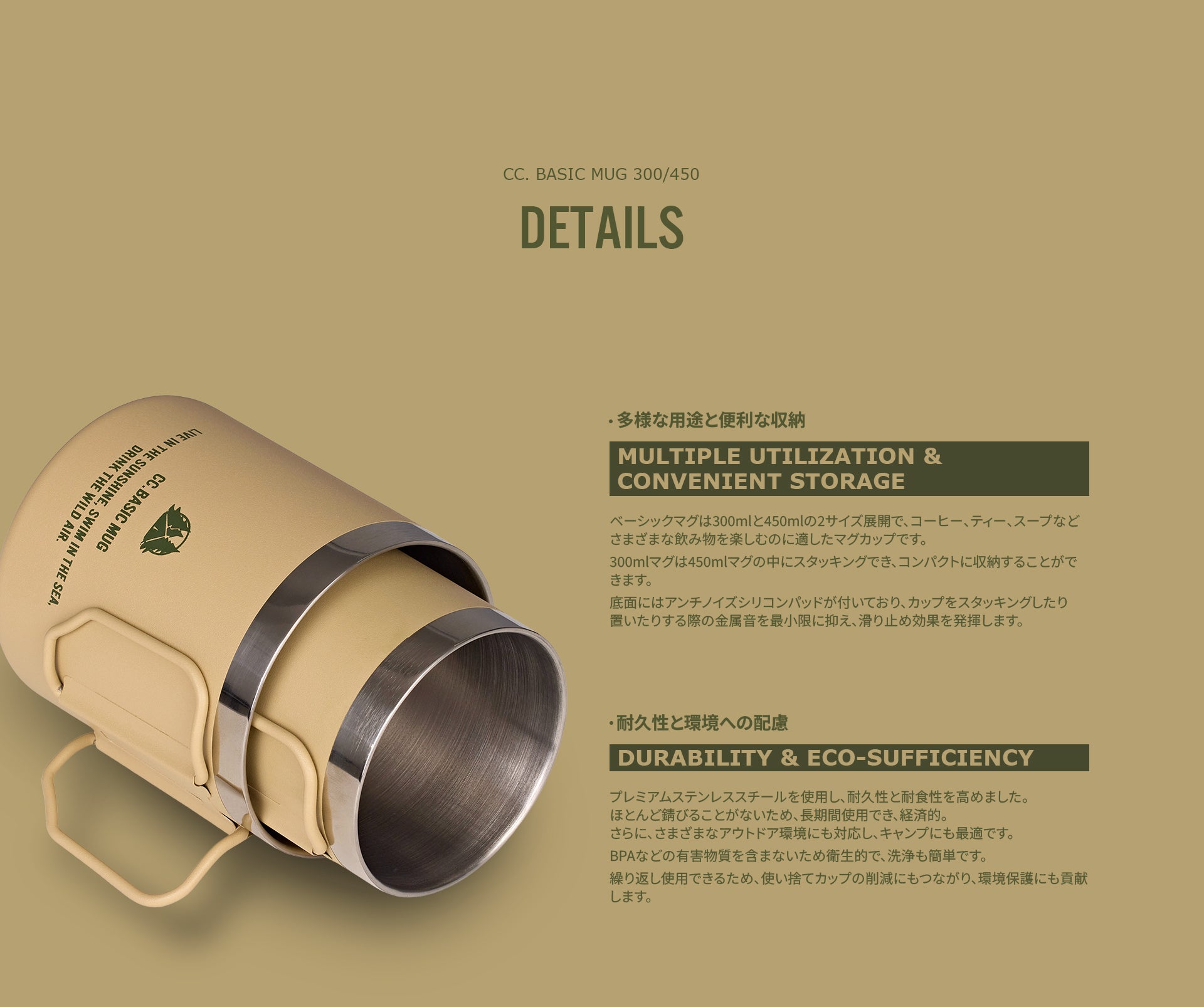 300mlと450mlの2サイズ展開で、キャンプでも自宅でも活躍する万能マグです。