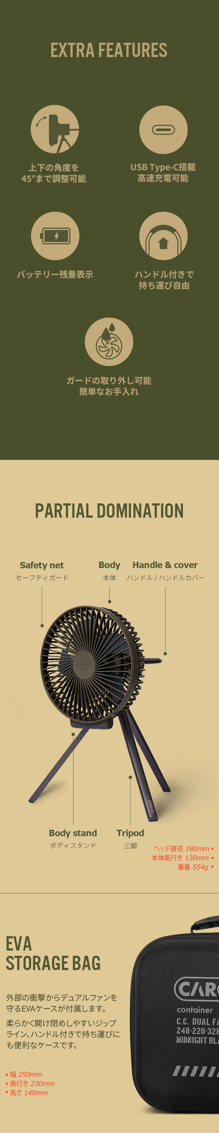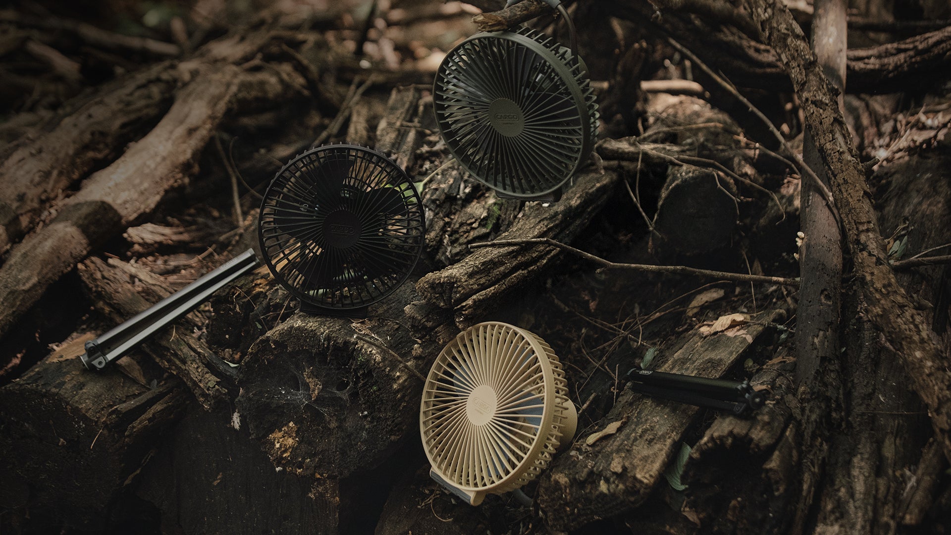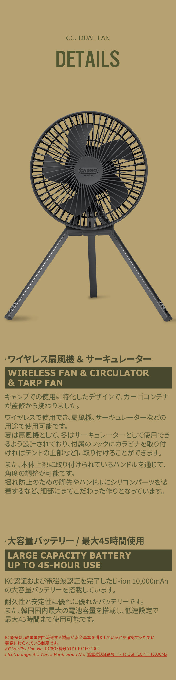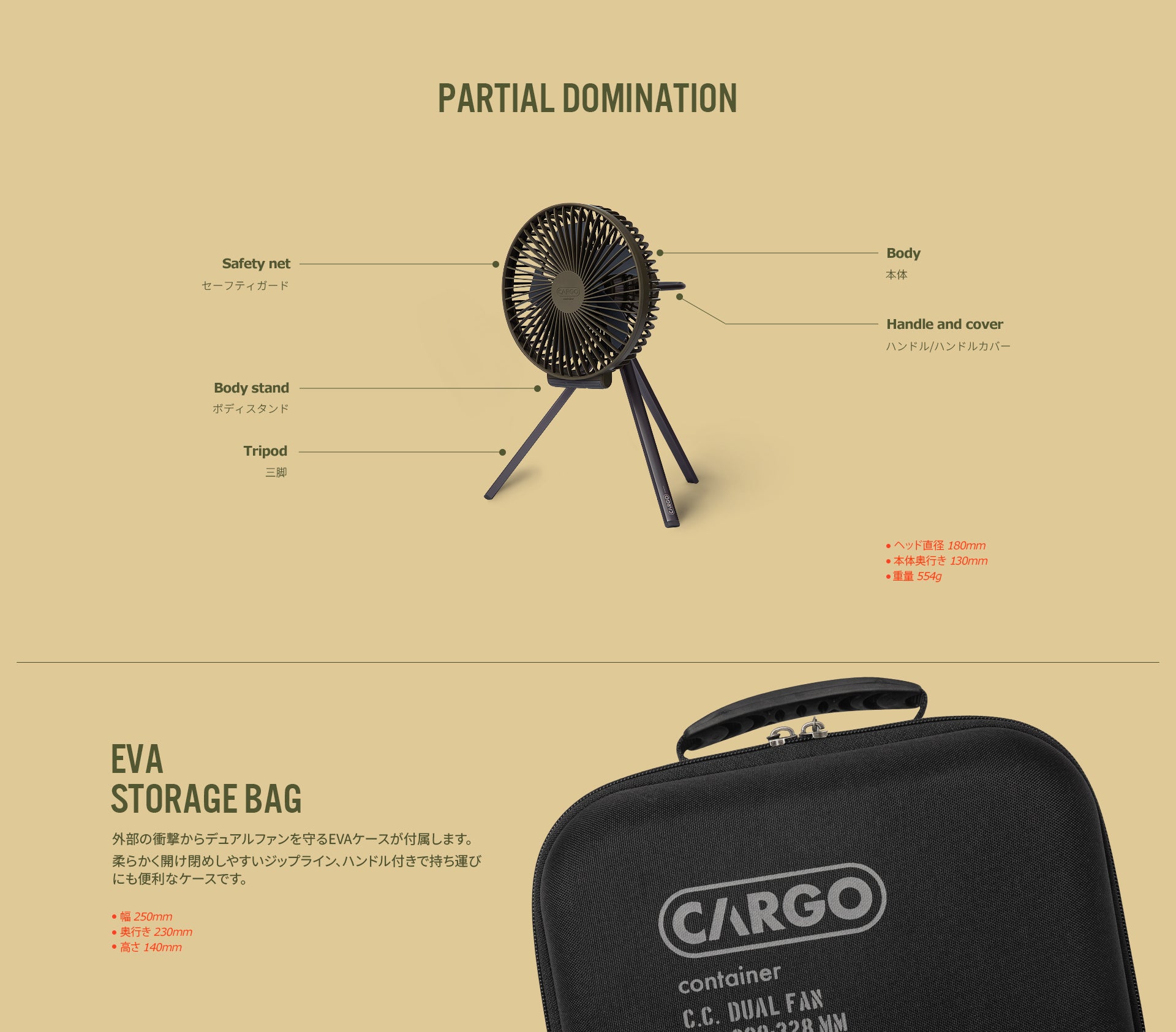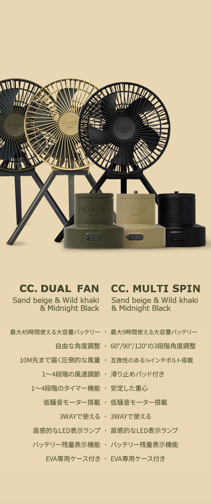 デュアルファンはカーゴコンテナが独自に開発した、ワイヤレスで使用できるポータブルファンです。