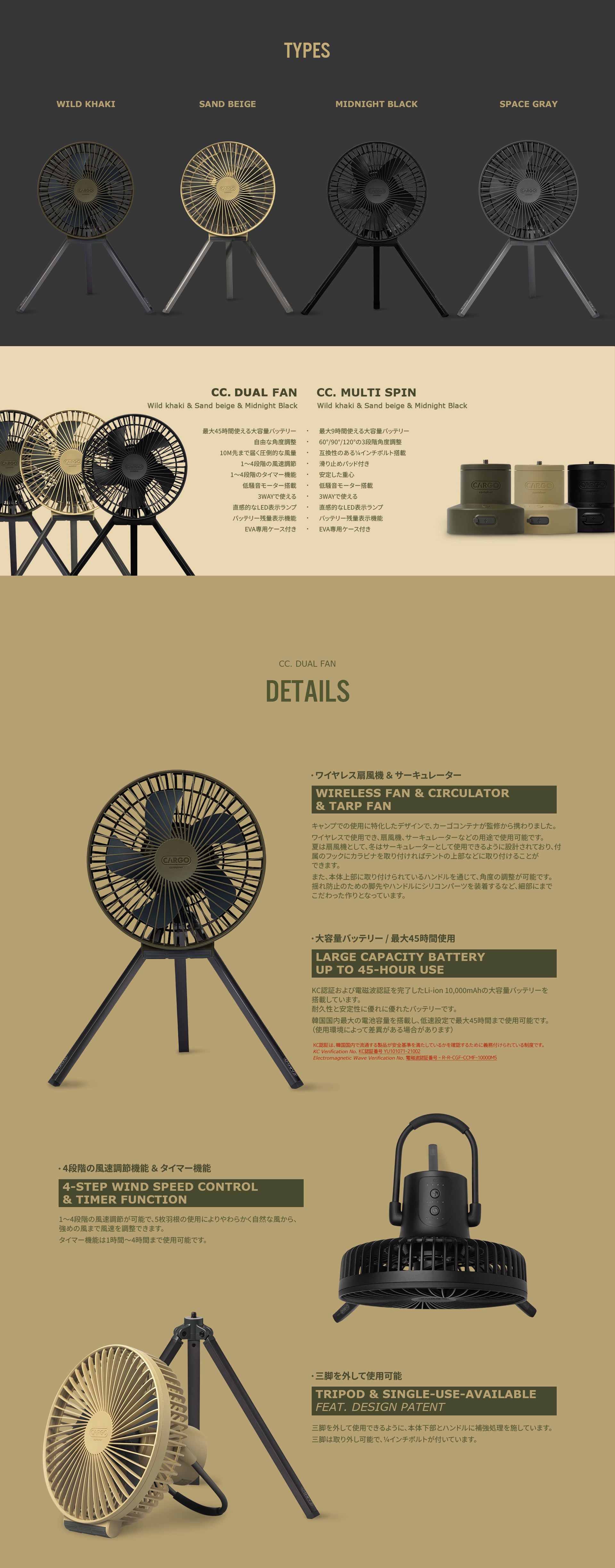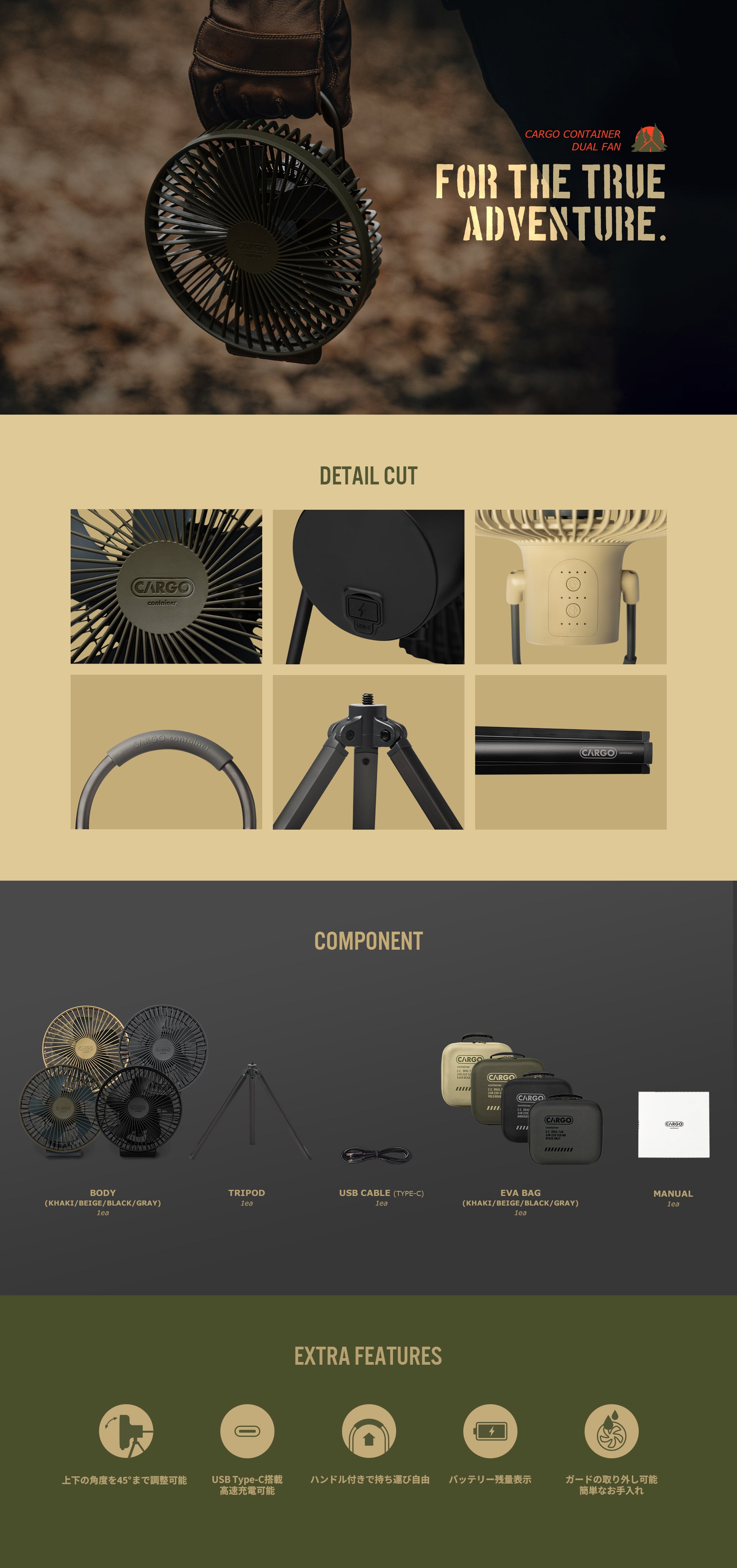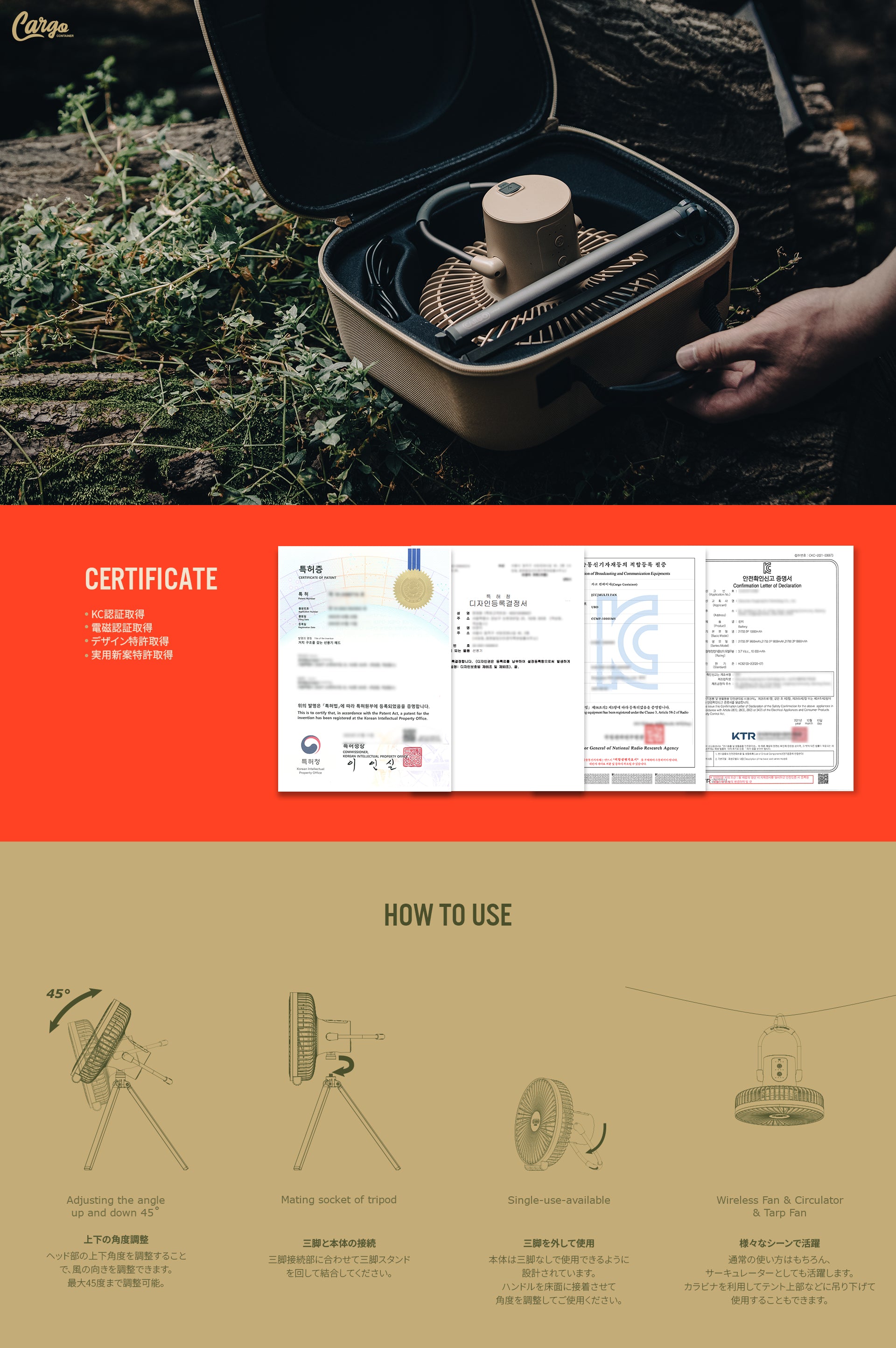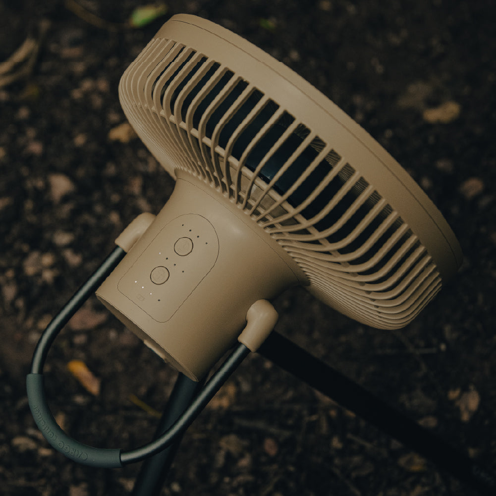 デュアルファンはカーゴコンテナが独自に開発した、ワイヤレスで使用できるポータブルファンです。