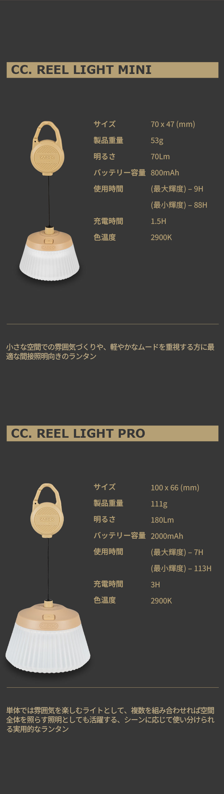 タープ下のムードづくりに。