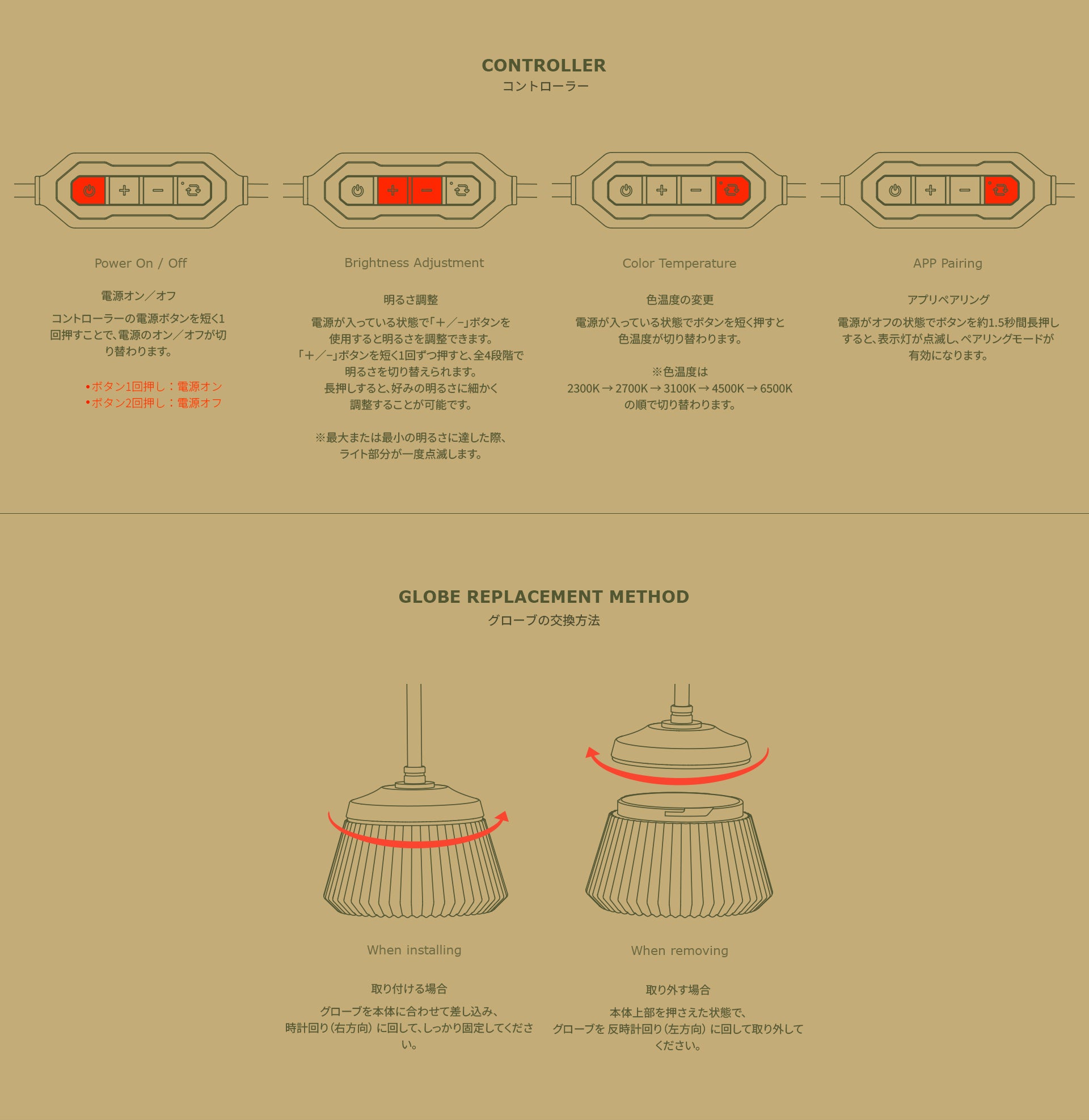 アプリでの遠隔操作はもちろん、2種類のグローブをシーンに合わせて付け替えて使用することが可能です。