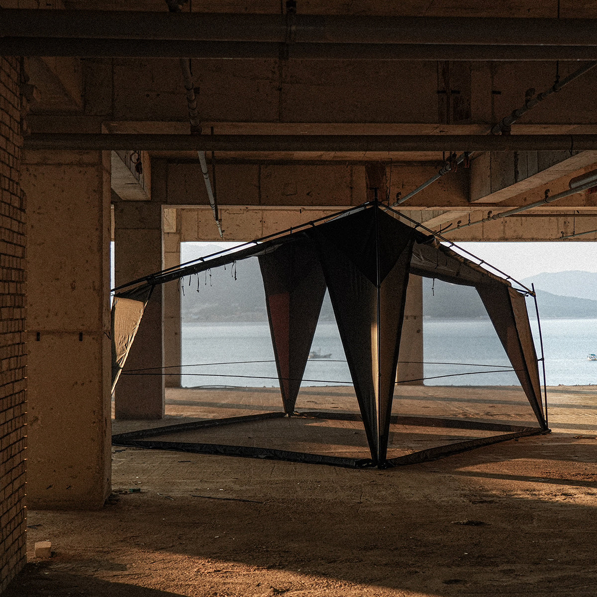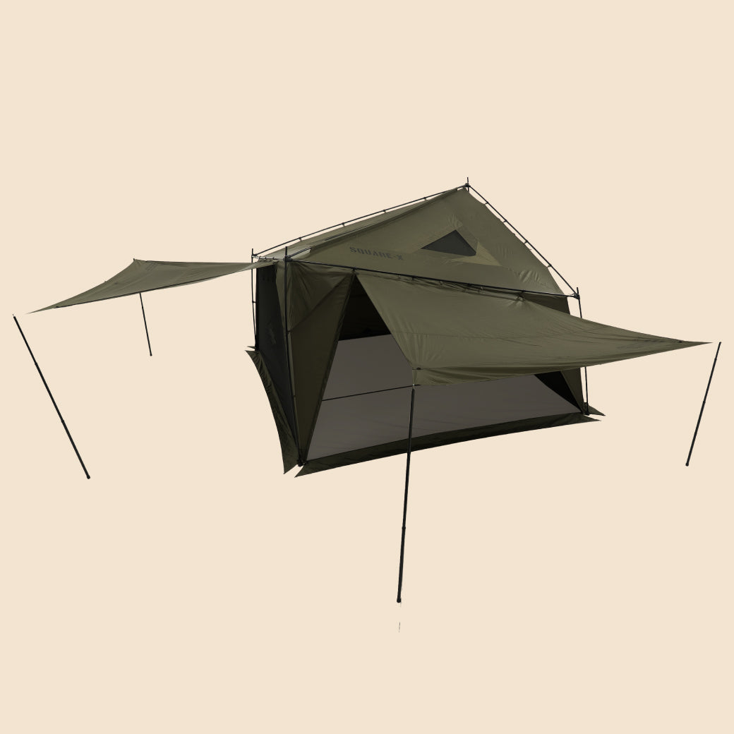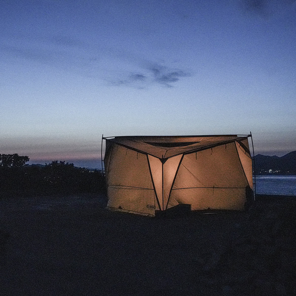 巨大なコンテナ船の先端から着想を得て、世界最高峰のテントポールメーカー「DAC」と共に幾度もの検証を重ねて完成しました。