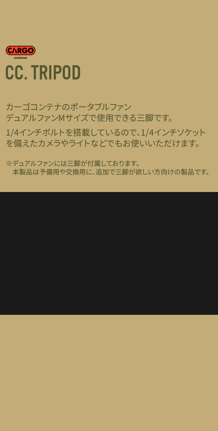カーゴコンテナのポータブルファン、 DUAL FAN Mサイズで使用できる三脚です。