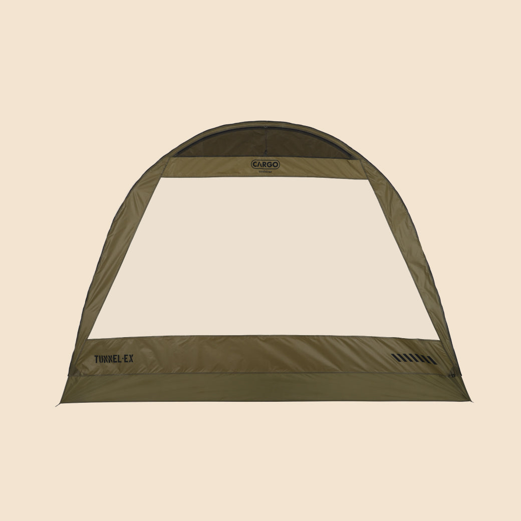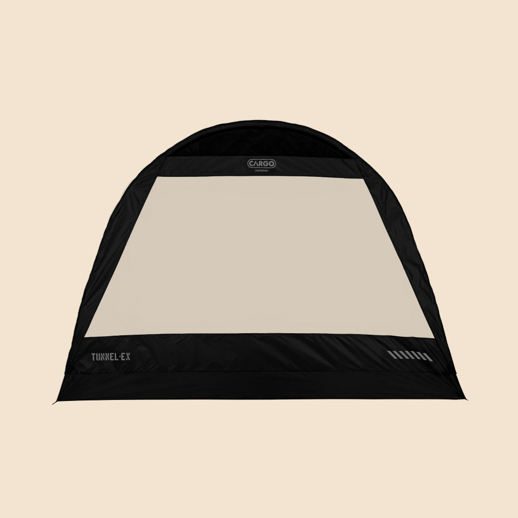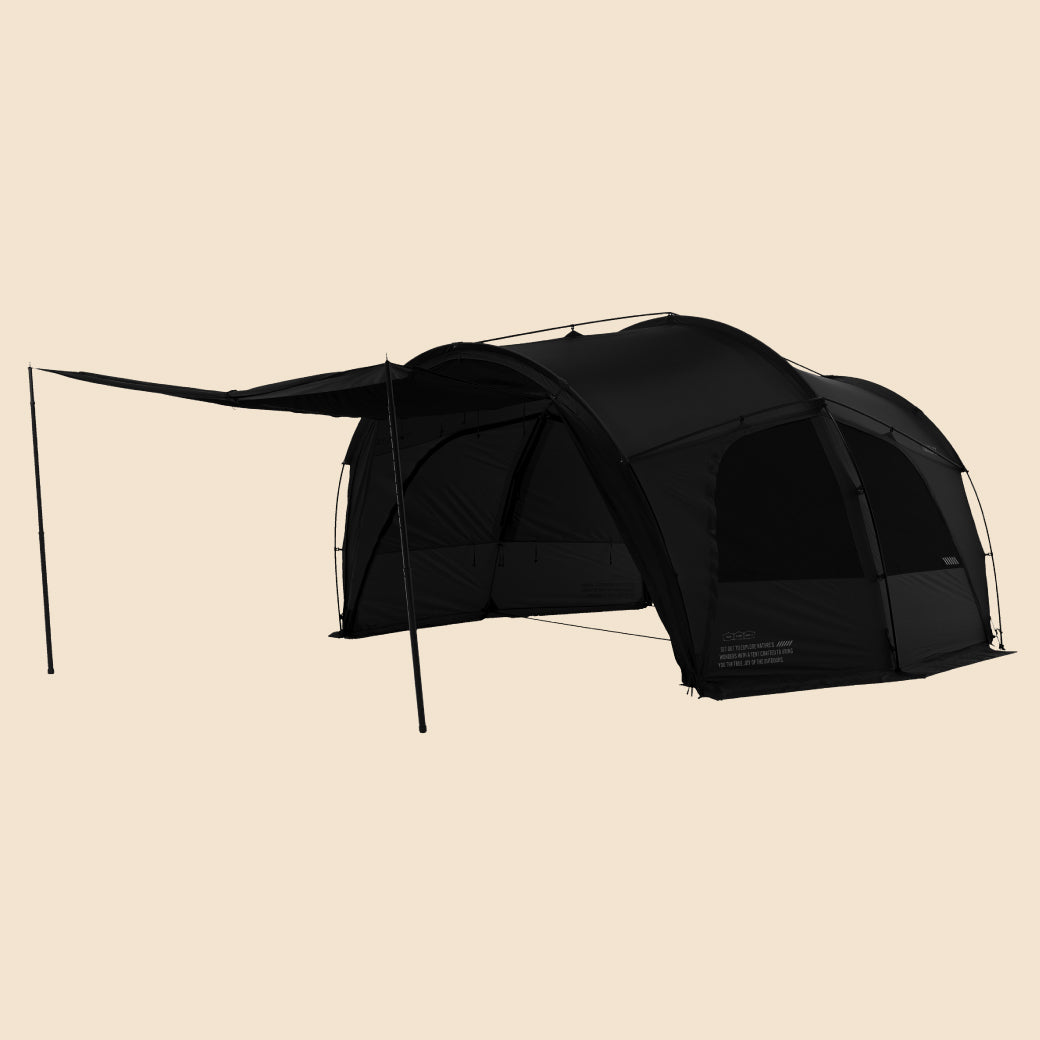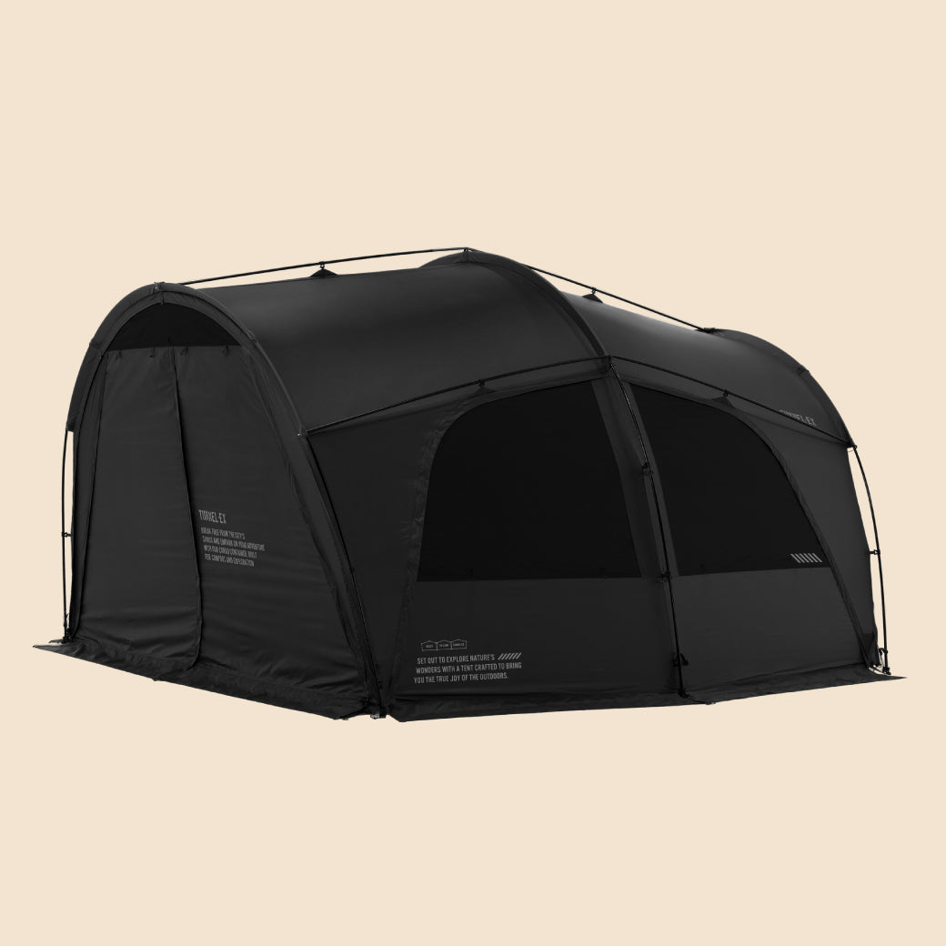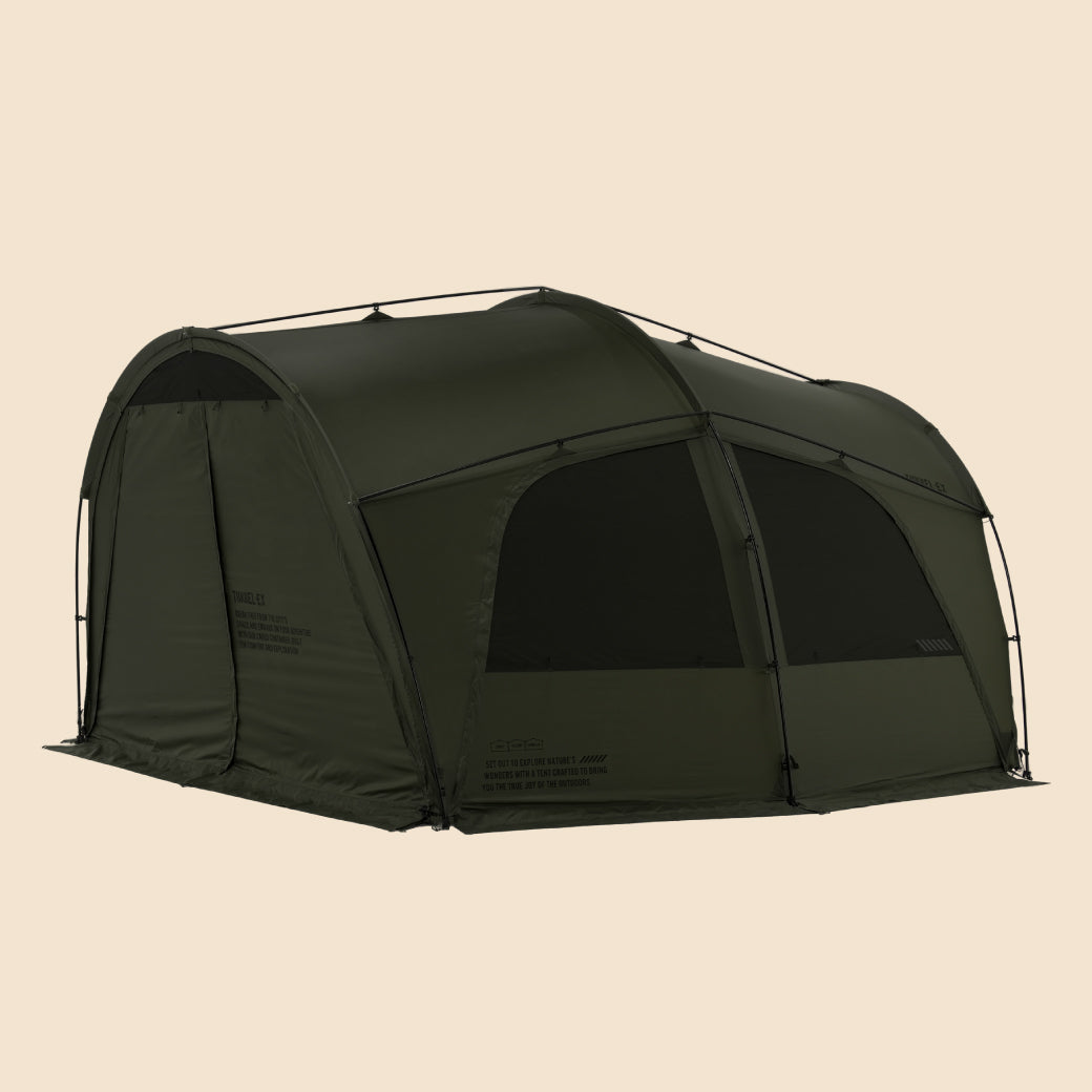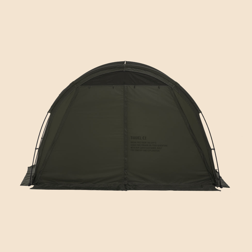 TUNNEL-EXは、CARGO CONTAINERとDACが共同で開発した2番目の作品であり、ドームテントの安定感とトンネルテントの開放感を兼ね備えた、ハイブリッド構造のプレミアムシェルターです。