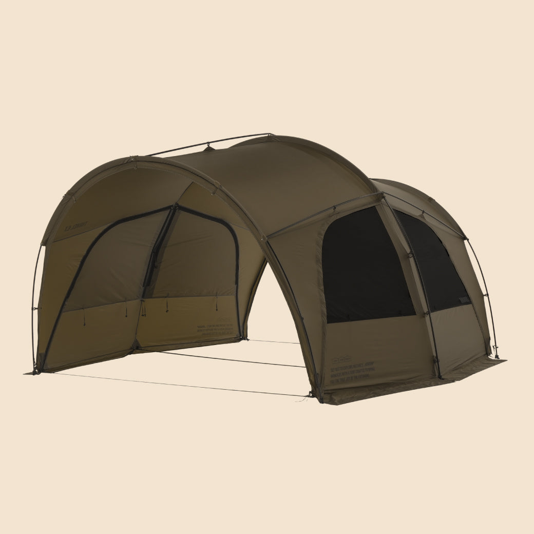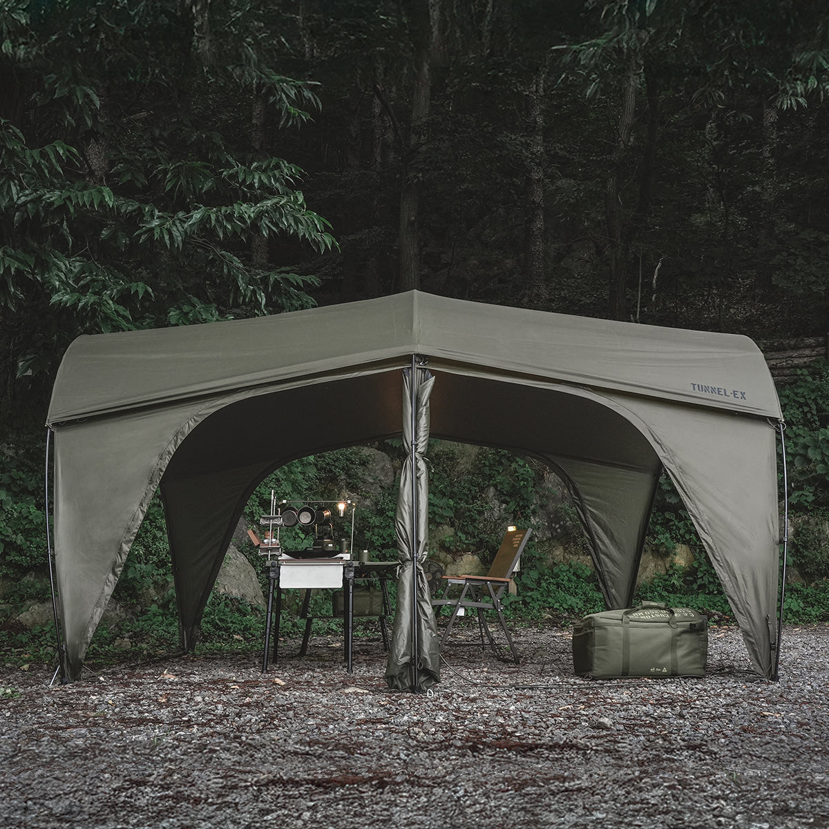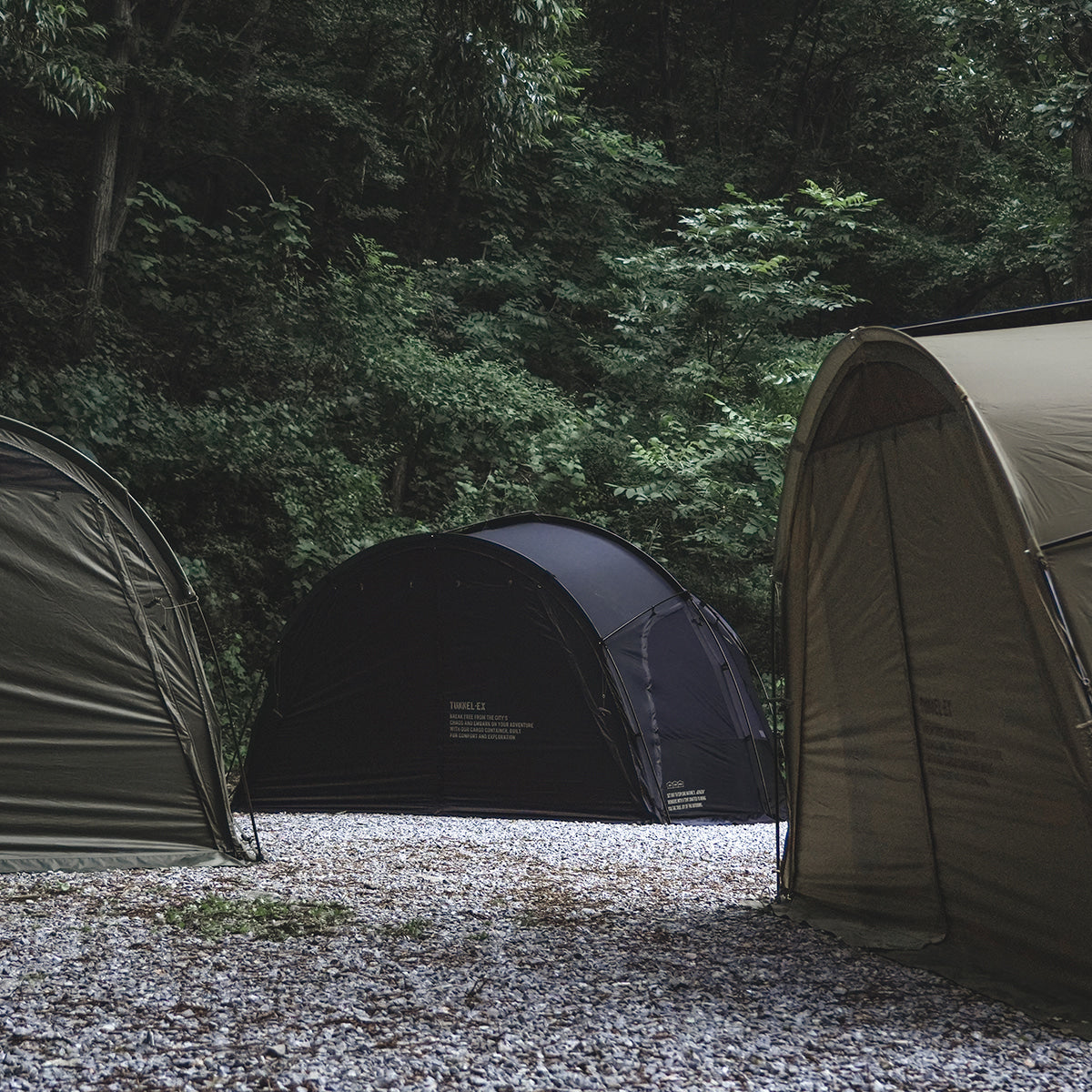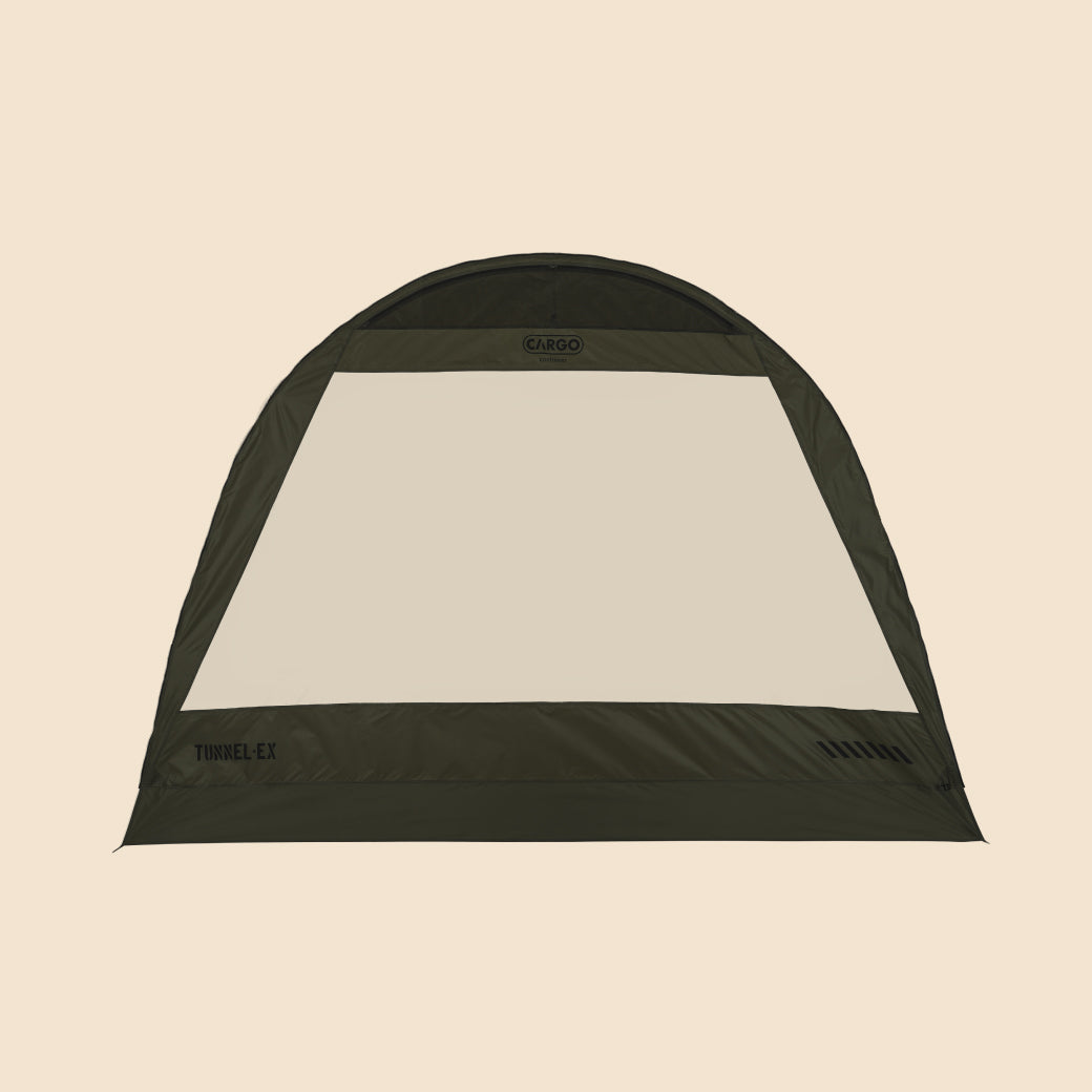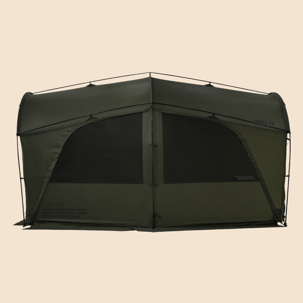 TUNNEL-EXは、CARGO CONTAINERとDACが共同で開発した2番目の作品であり、ドームテントの安定感とトンネルテントの開放感を兼ね備えた、ハイブリッド構造のプレミアムシェルターです。
