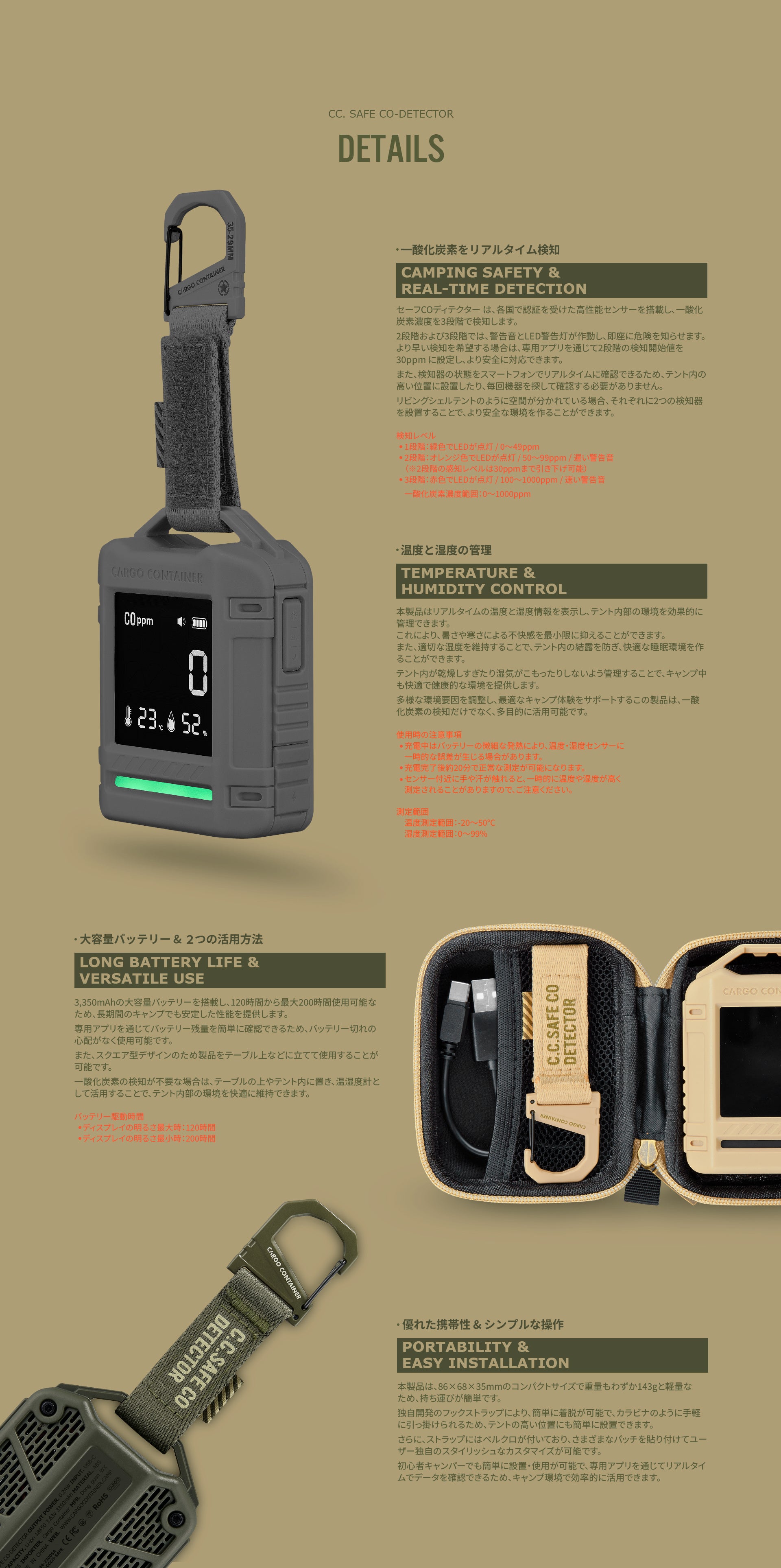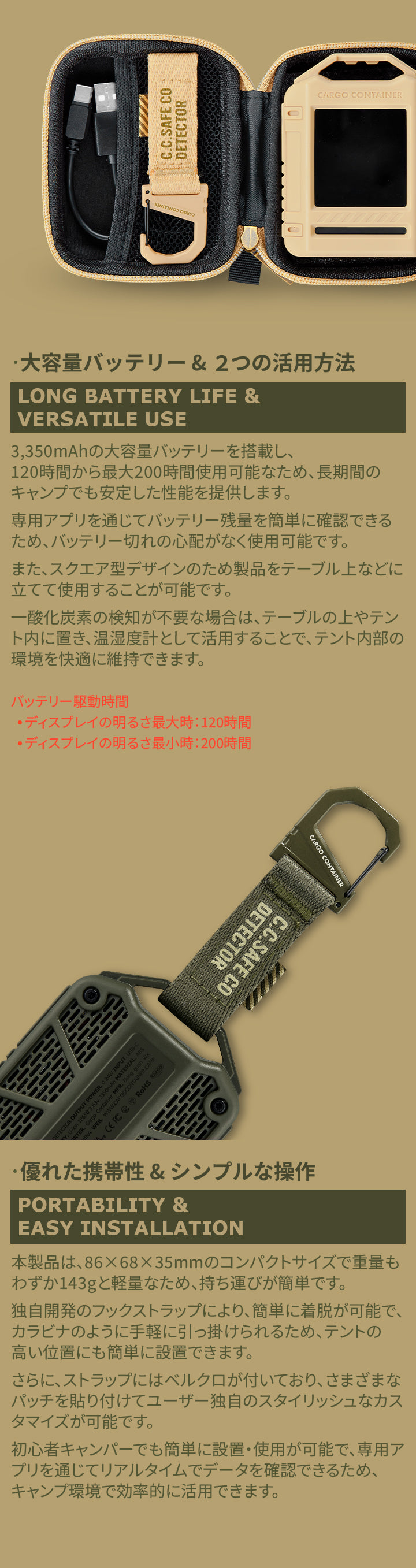 高精度センサーとアラーム機能を搭載し、安心・安全なアウトドア時間をサポートします。
