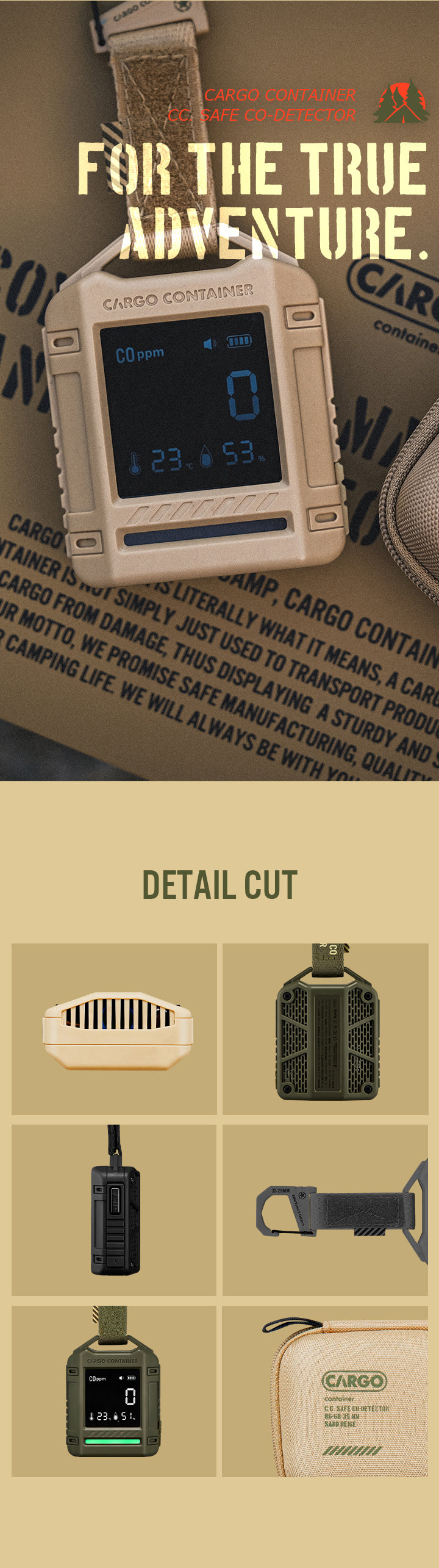 キャンプや車中泊での一酸化炭素中毒リスクを知らせる、ポータブル一酸化炭素検知器。